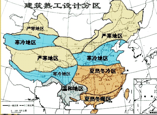 下圖是中國熱工分區標準與分區圖(不難看出,石家莊屬于寒冷地區):