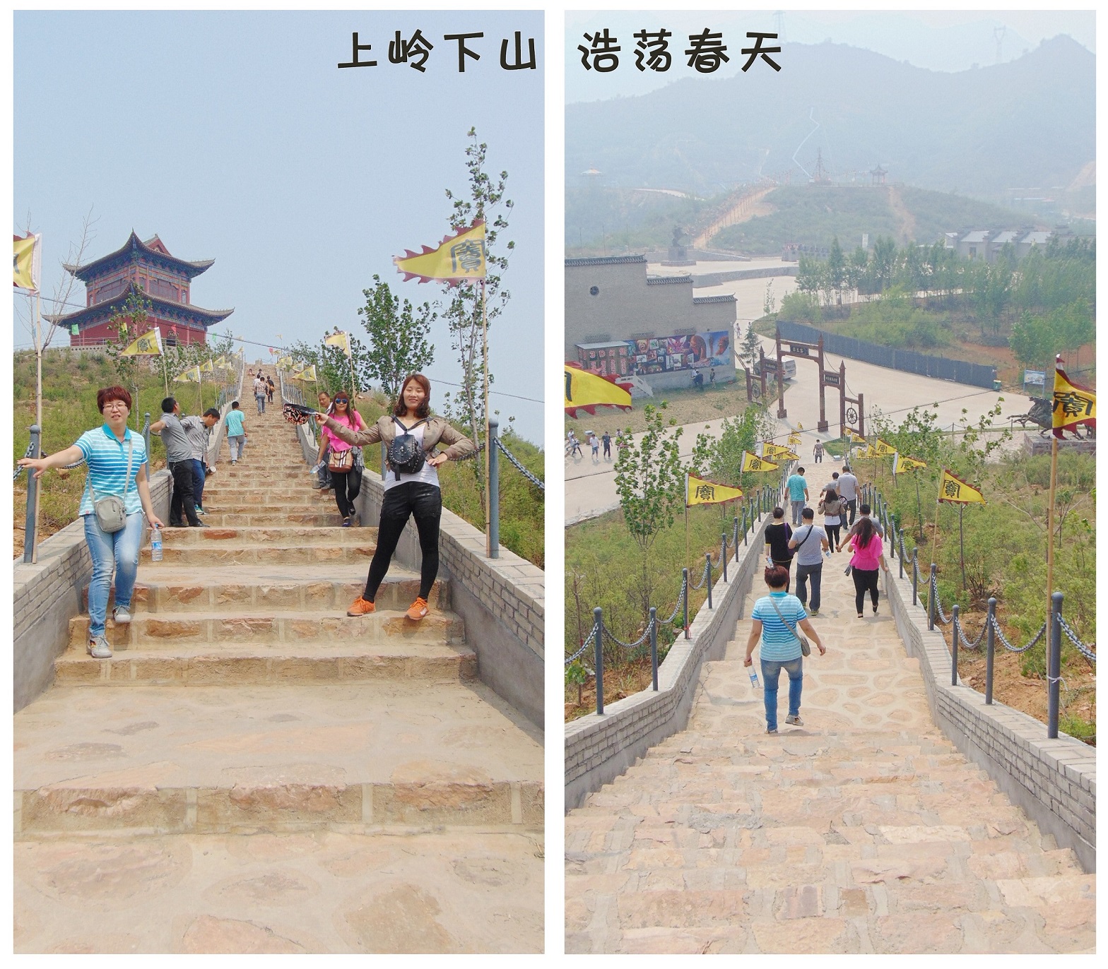 從山寨的點將臺、虎賁營、三省六部、羽林軍再到高空滑索、海盜產、碰碰車、密室逃脫,將隋朝、民國、現代融合于一個山寨,古今穿梭,讓人好不愜意。——華源一直堅持以人為本,不論是工作,還是生活,不論是上下級,還是同事之間,做好溝通與交流,凡事多多征求大家的意見,力求建立和諧的工作氛圍,華源配圖文字版春游,走起~